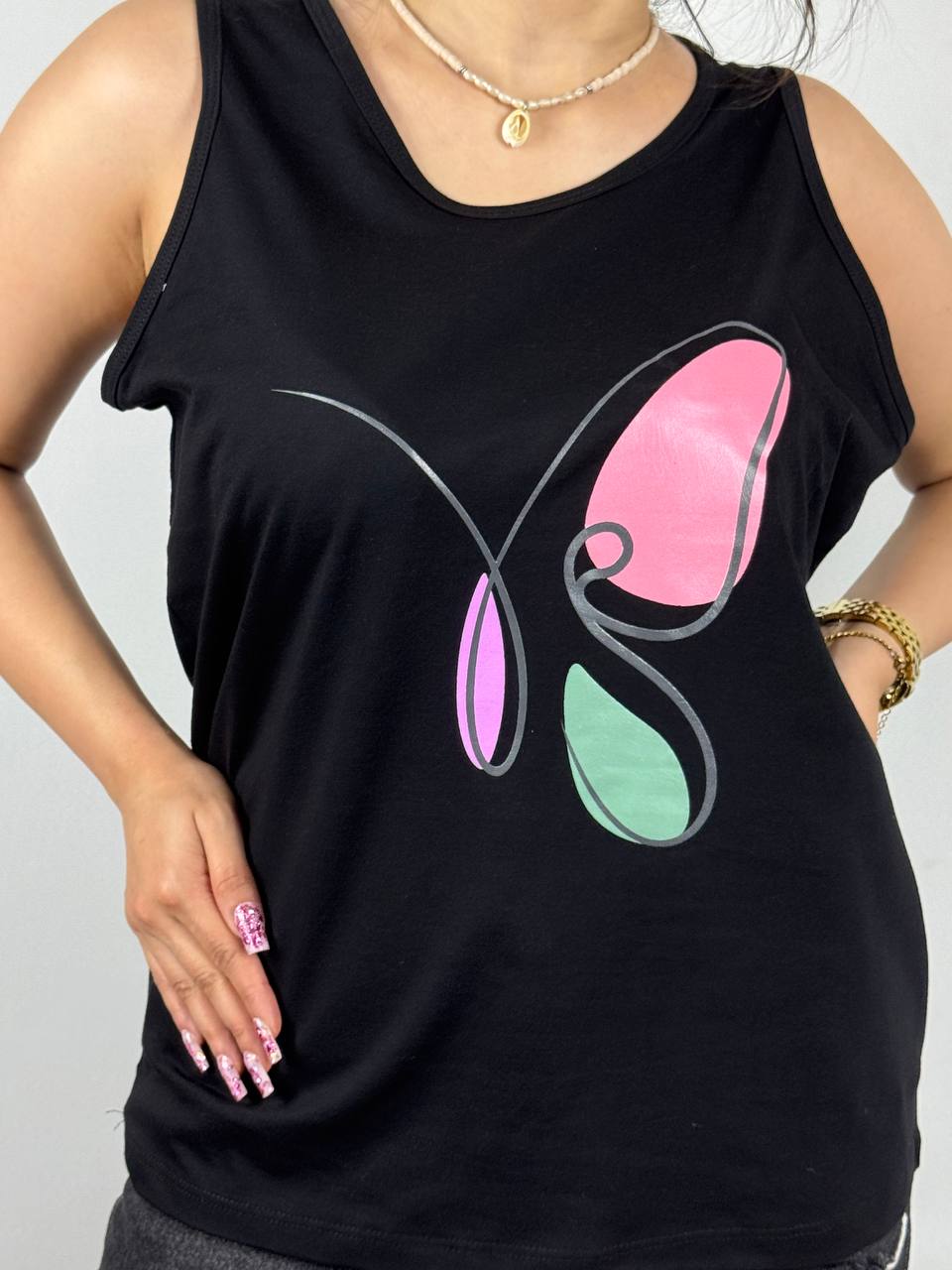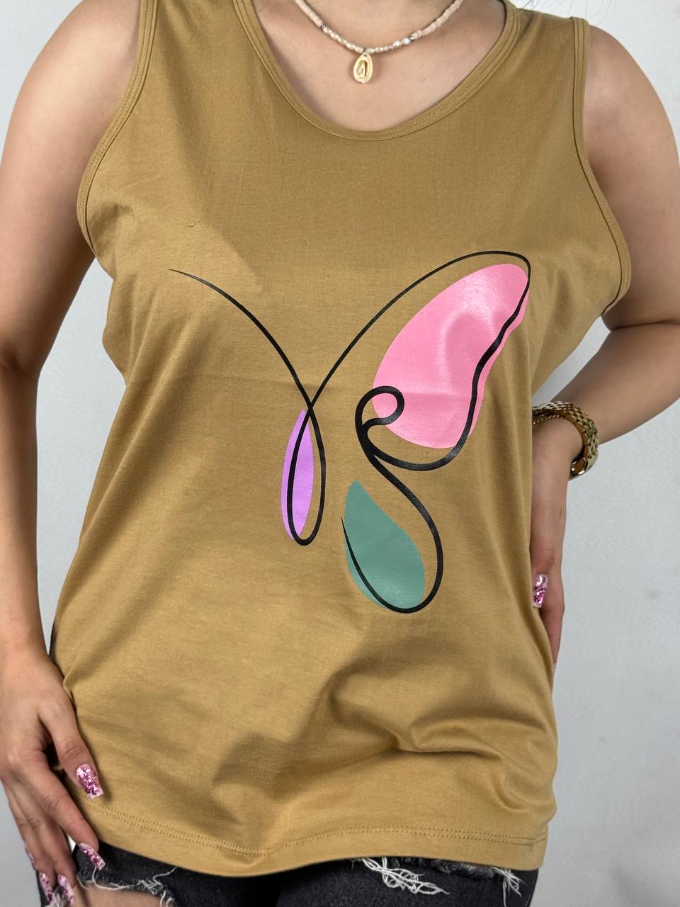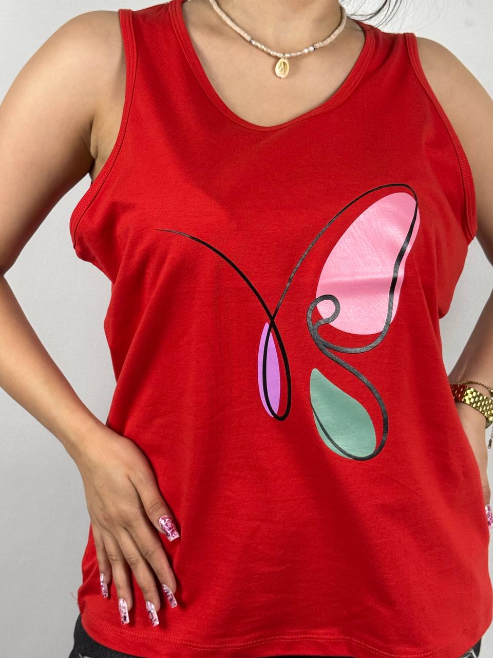 تاپ پنبه چاپ:پروانه جنس:۱۰۰٪ پنبه سایز:۳۸الی۵۲ پک ۱۰تایی ۱۰ رنگتماس بگیرید
