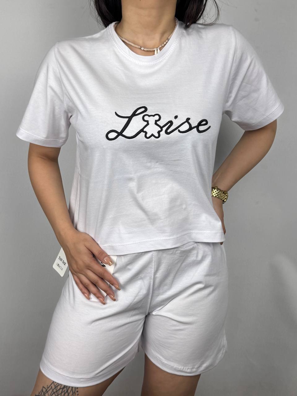 کراپ و شورتک ست گلدوزی نوشته جنس:پنبه ۱۰۰٪ سایز:۳۸الی۴۴ پک ۱۰تایی ۱۰رنگتماس بگیرید