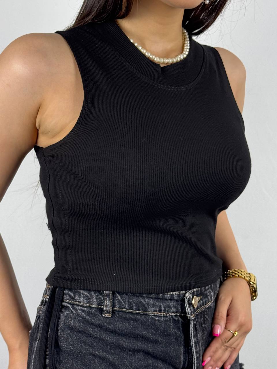 تاپ بغل گره دار تک مشکی پیسوله جنس:کبریتی فانریپ سایز:۳۸الی۴۴ پک ۱۰تایی دو رنگتماس بگیرید